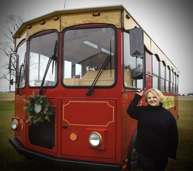 In the fall of 2022 Vicky decided to pursue her dream of becoming a Frankenmuth tour guide. She and her husband Todd purchased a trolley bus from Door County Wisconsin and started their journey. After several months of planning and hard work, in May of 2023, Vicky took a leap of faith and left her healthcare career after 28 years to start her dream.