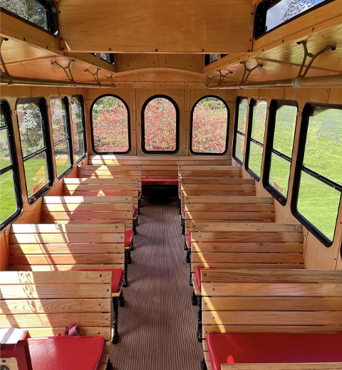 Arrive in style with eye-catching transportation. Our nostalgic trolley holds up to 26 people! Private rental is available for events such as weddings, bachelorette and bachelor parties, birthdays, prom, family reunions, corporate events or anything else you can think of! The trolley also provides a beautiful backdrop for memorable photos! Ride along in comfort with your friends or loved ones and leave the driving to us!